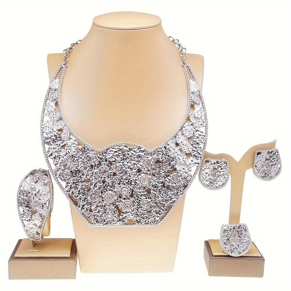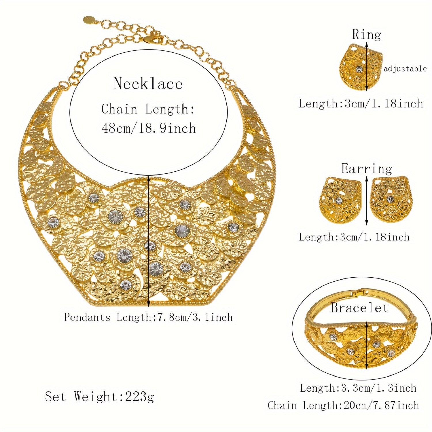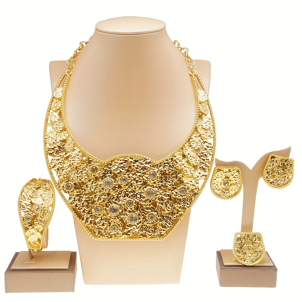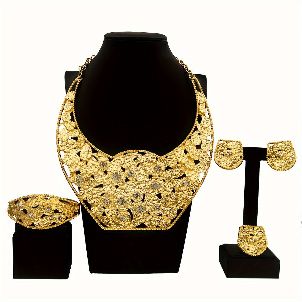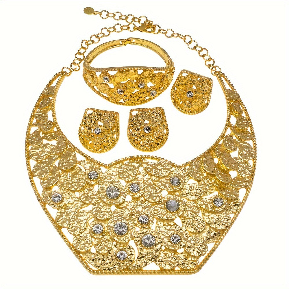 SYHOL Gold 24K Round Necklace Set with Earrings and Bracelet - Exquisite Holiday Jewelry for Parties and Weddings