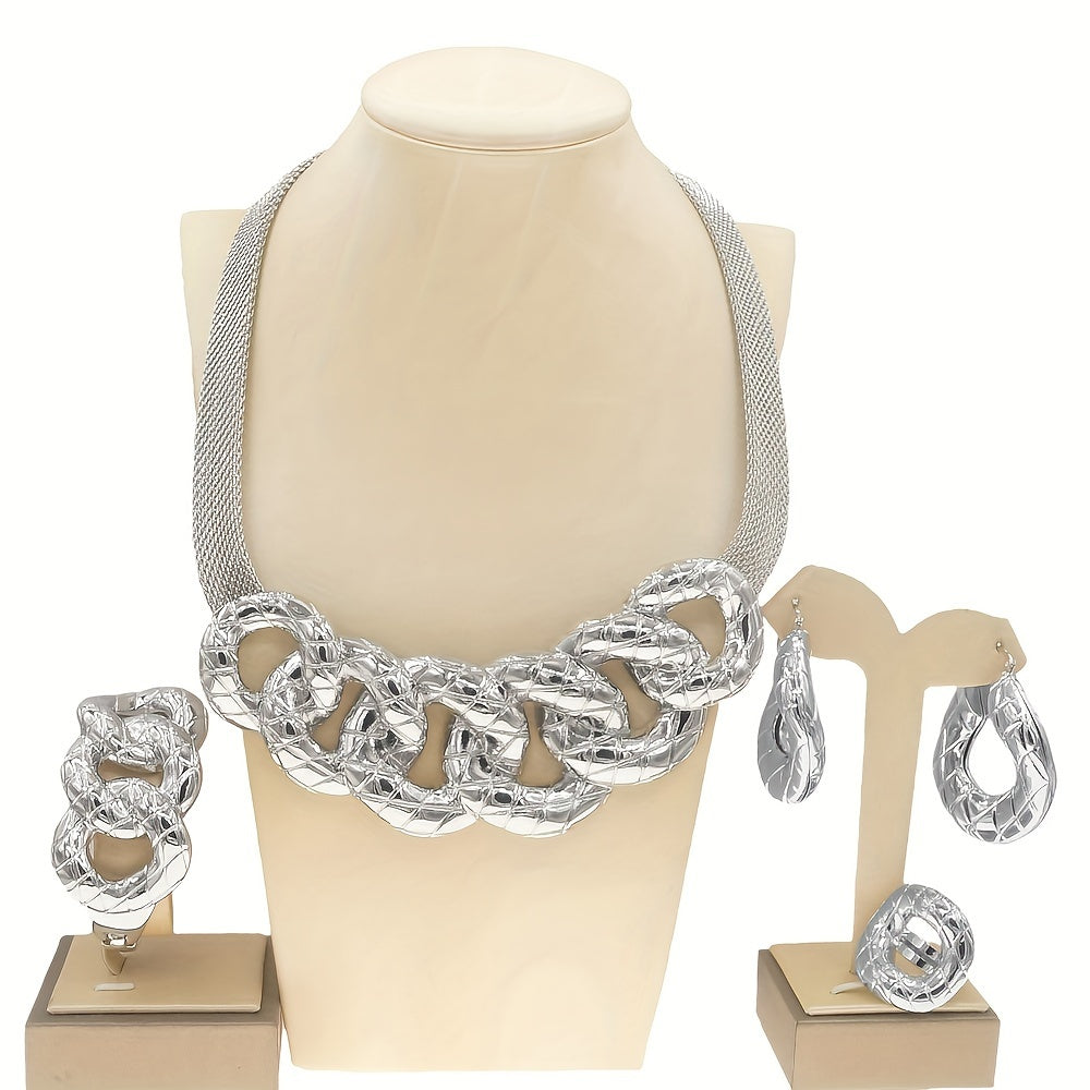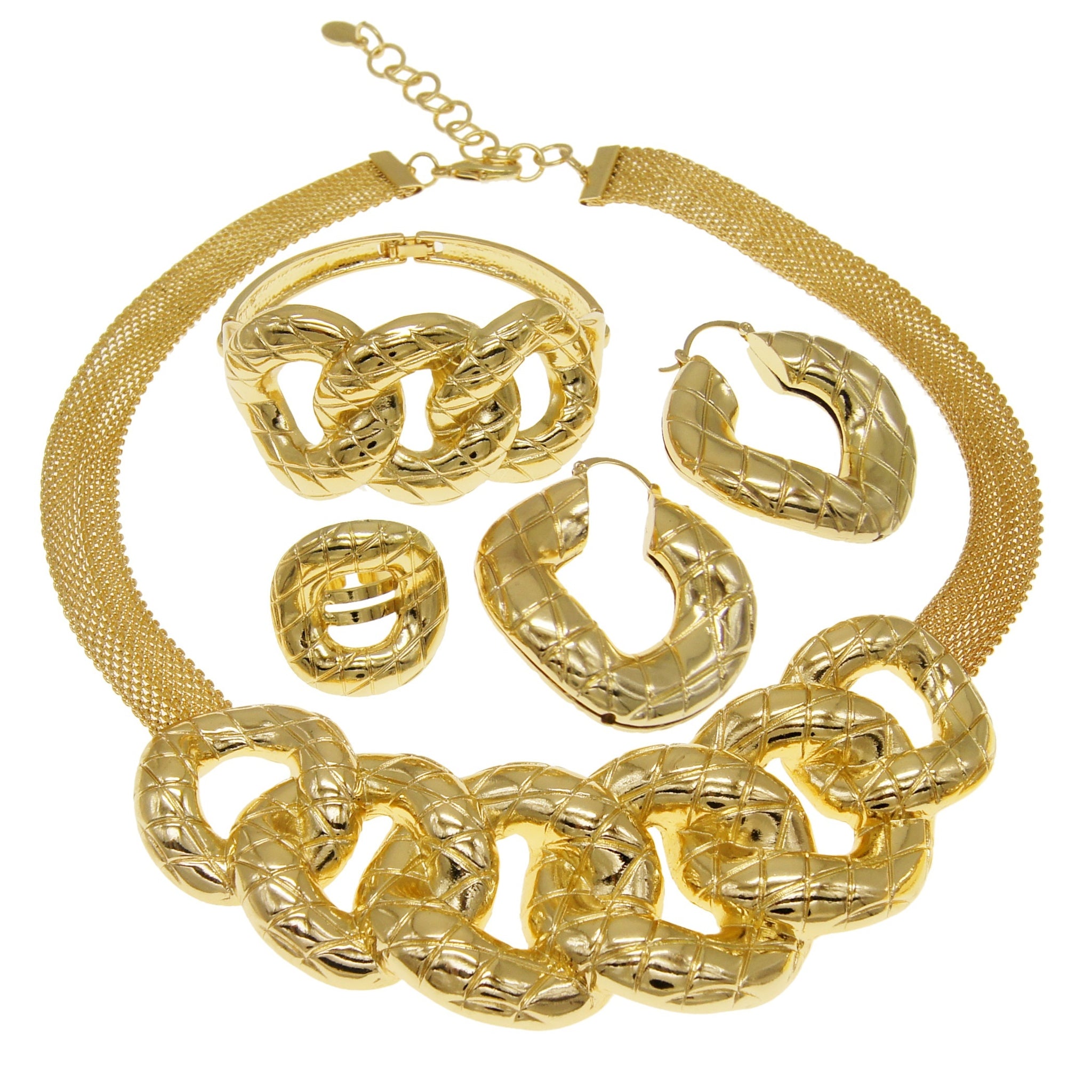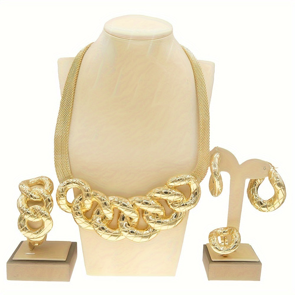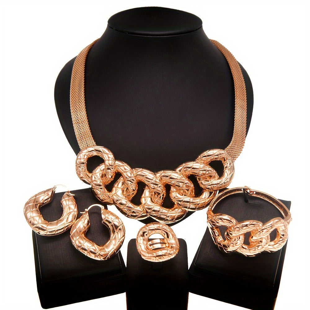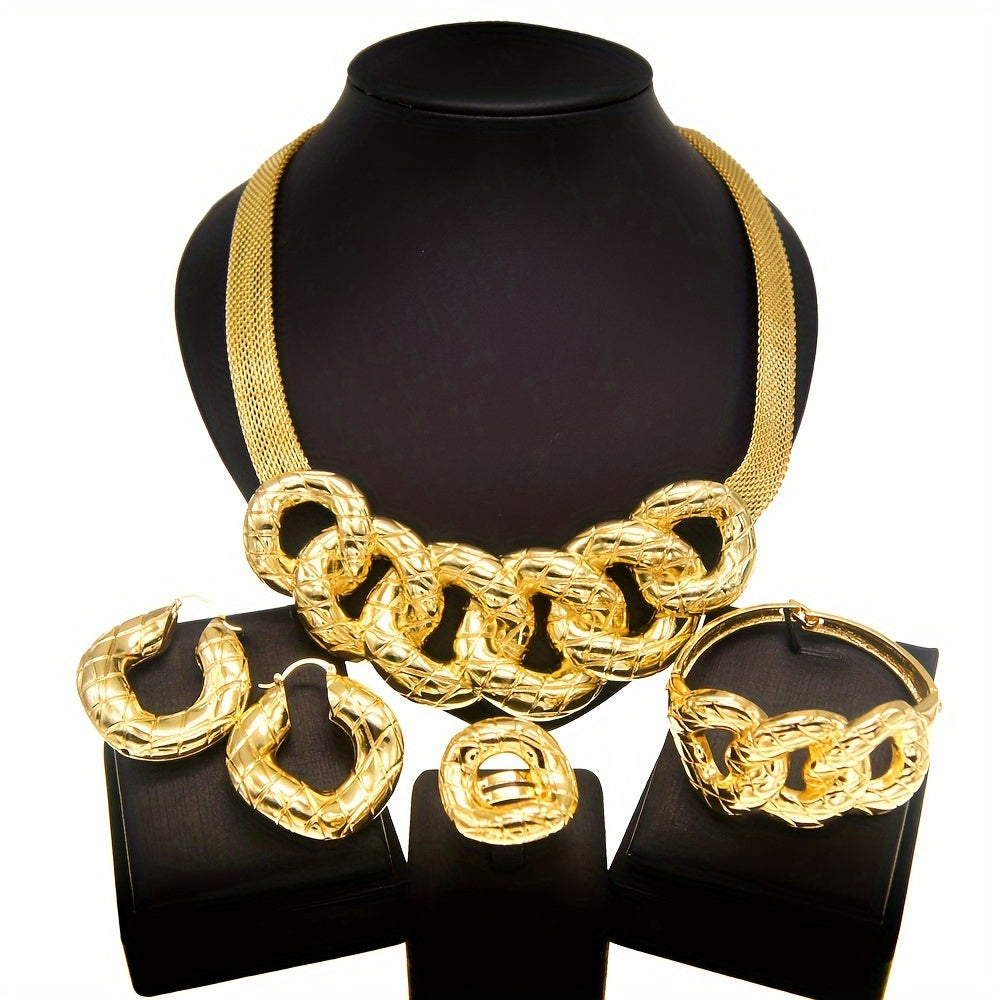 SYHOL Urban Fashion 24K Gold Plated Jewelry Set for Women - Chunky Necklace with Matching Earrings, Bracelet & Ring - November Birthstone, Zinc Alloy, for Wedding & Parties - All-Season Holiday Gift