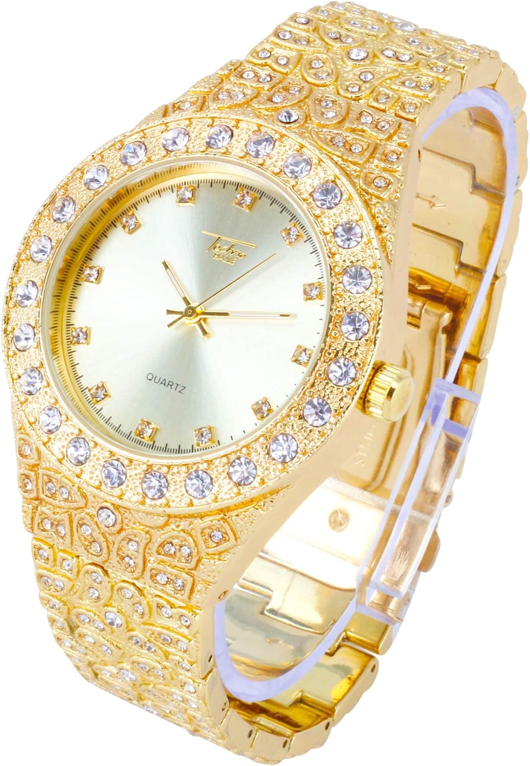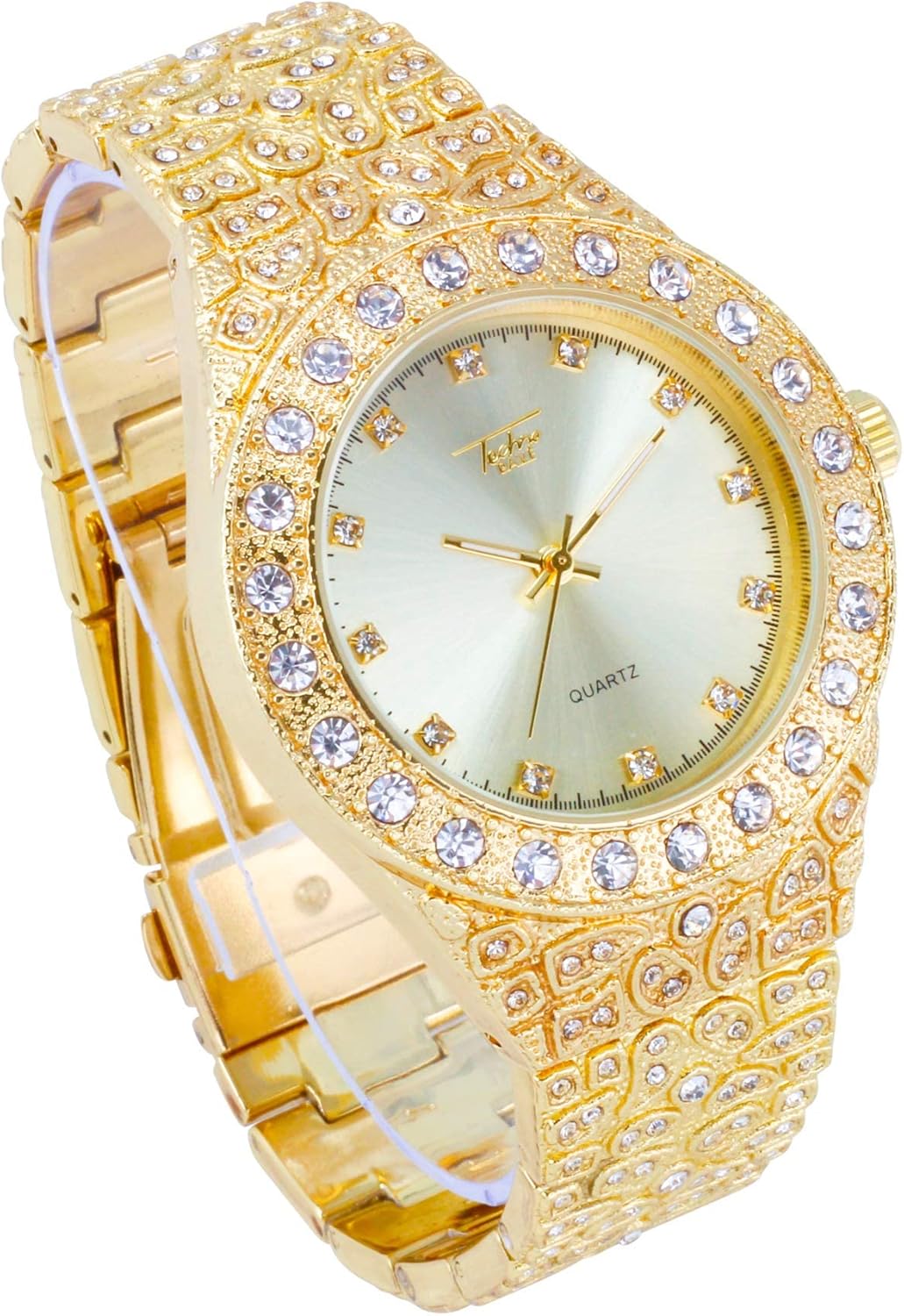 Techno Pave Mens Iced Out 44mm Nugget Diamond Watch & Pendant Set, Quartz Movement