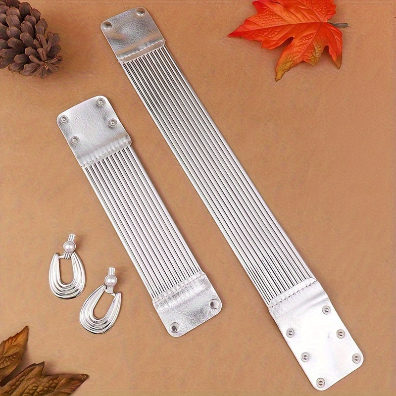 Alright, fam, if you’re all about that Boho vibe and wanna rock some drip that screams effortless chic, this Bohemian Striped PU Leather Choker & Earrings Set is your go-to accessory. Think natural vibes mixed with sassy elegance - perfect for turning heads at any party or just leveling up your everyday fit. Crafted from lush PU leather and paired with synthetic stones that low-key shine like you just flipped on your ring light.