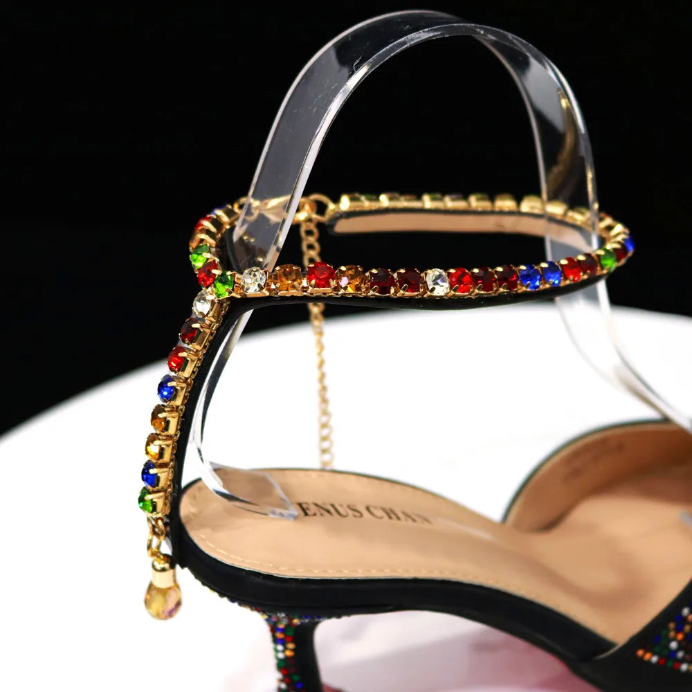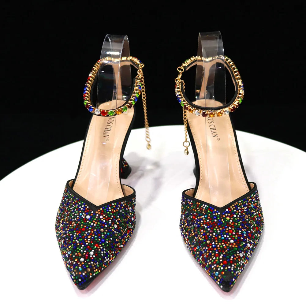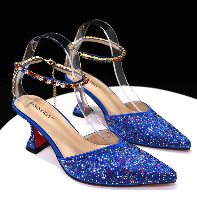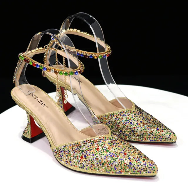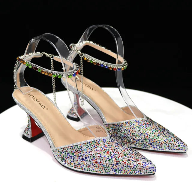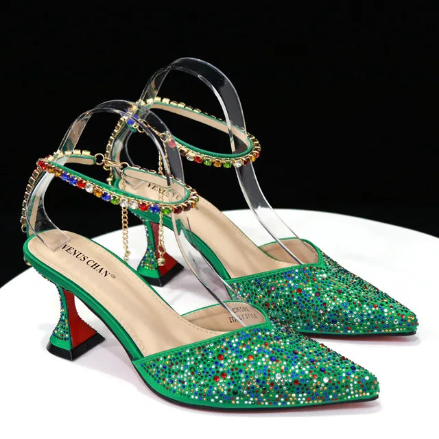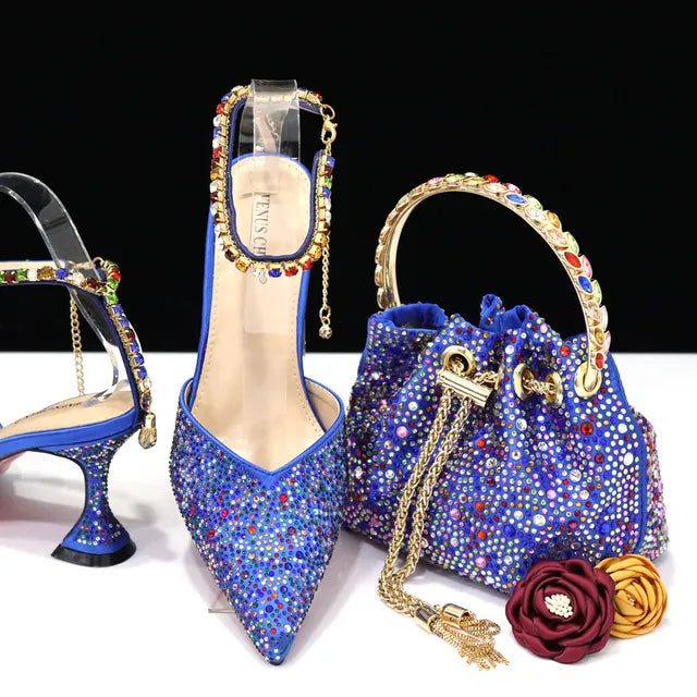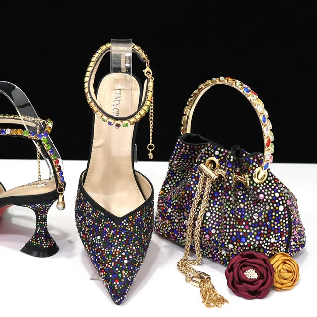 Venus Chan 2023 Italian Design Luxury Women's Shoes And Bag Set, Full Diamond Decoration Metal Closure Bag
