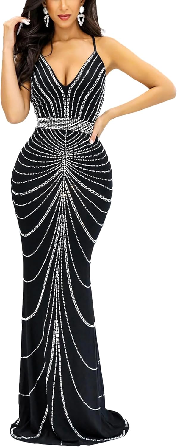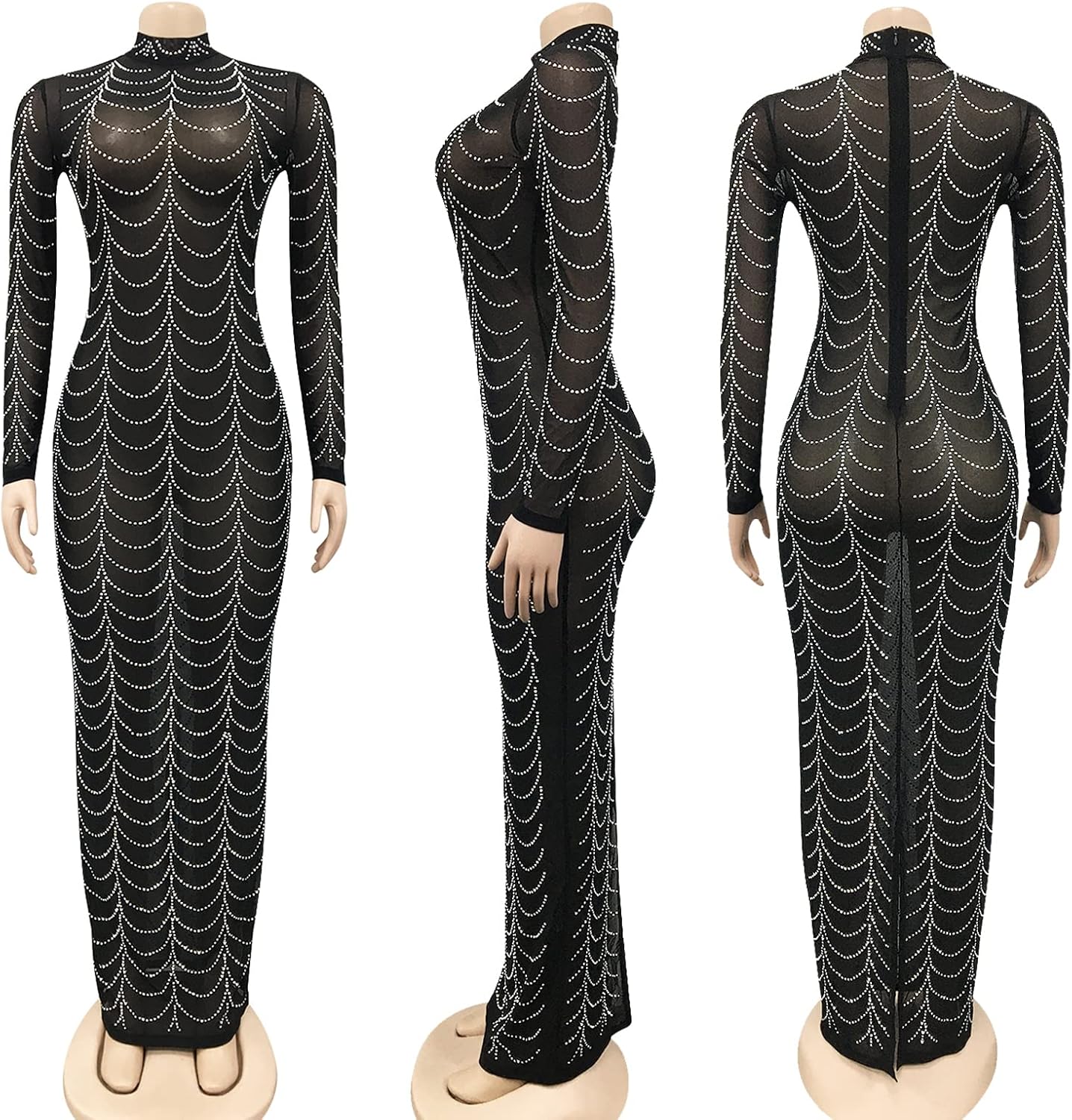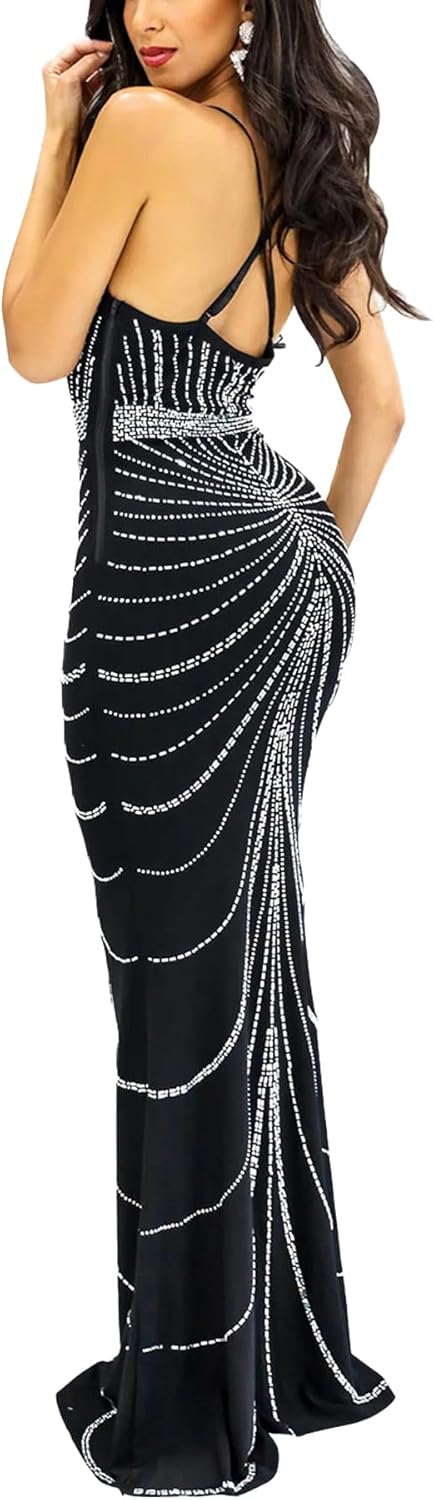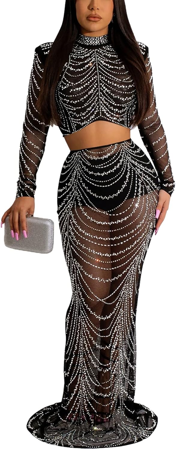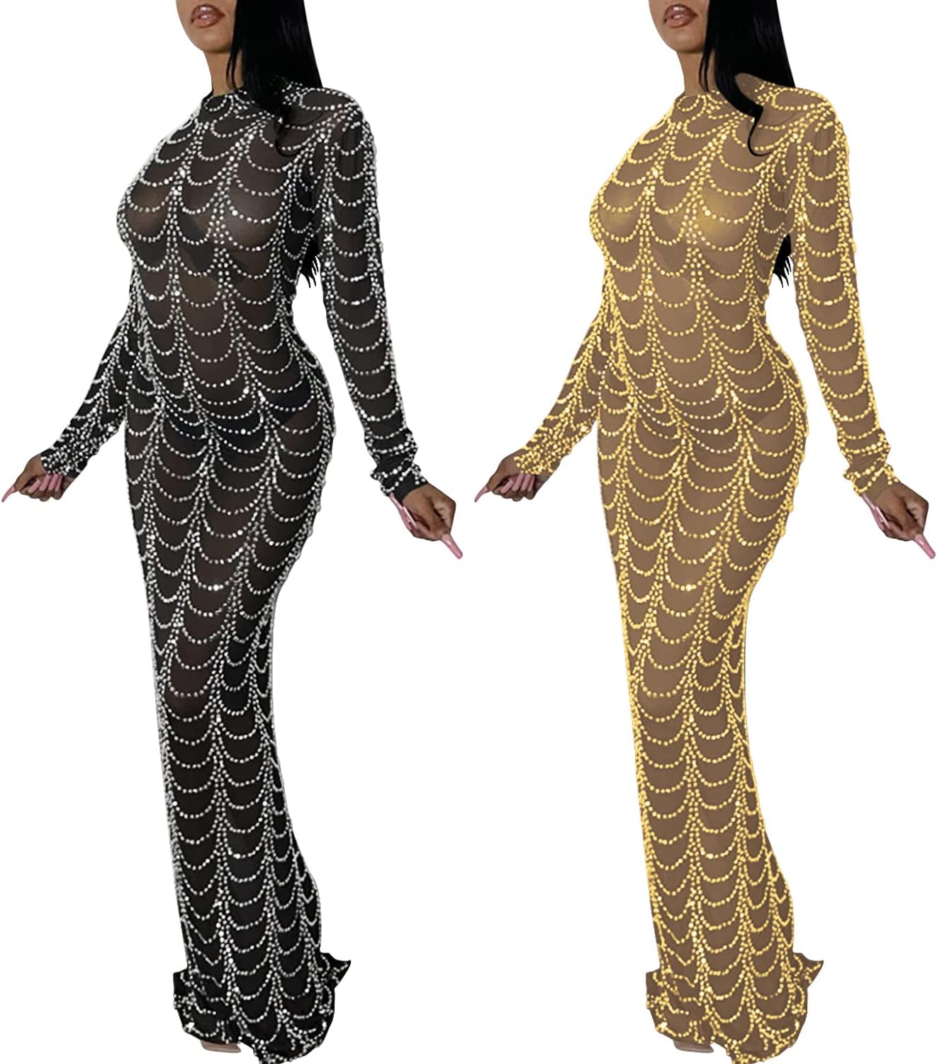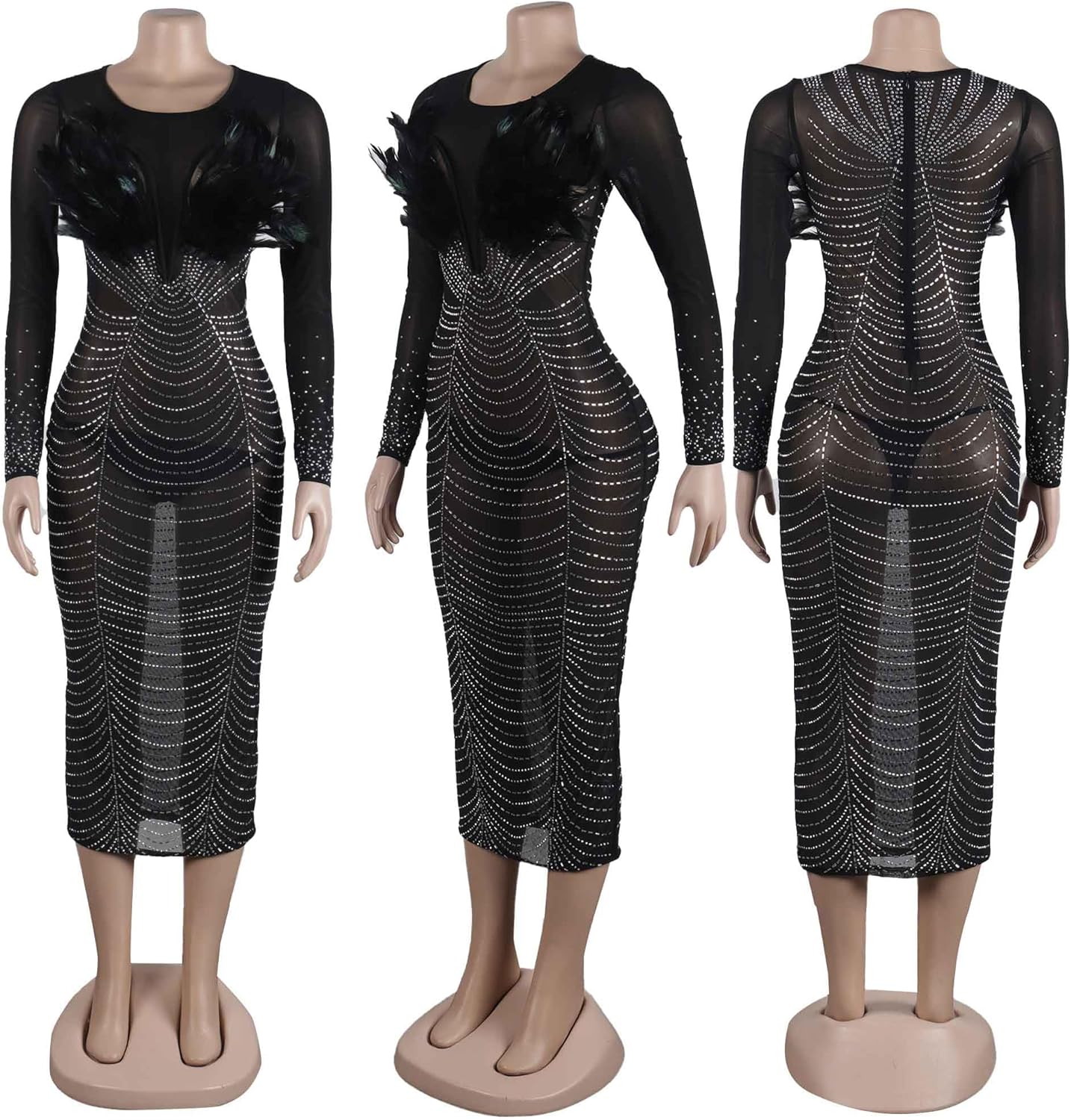 Women Sexy Elegant Rhinestone Mesh See Through Bodycon Party Club Night Out Dress