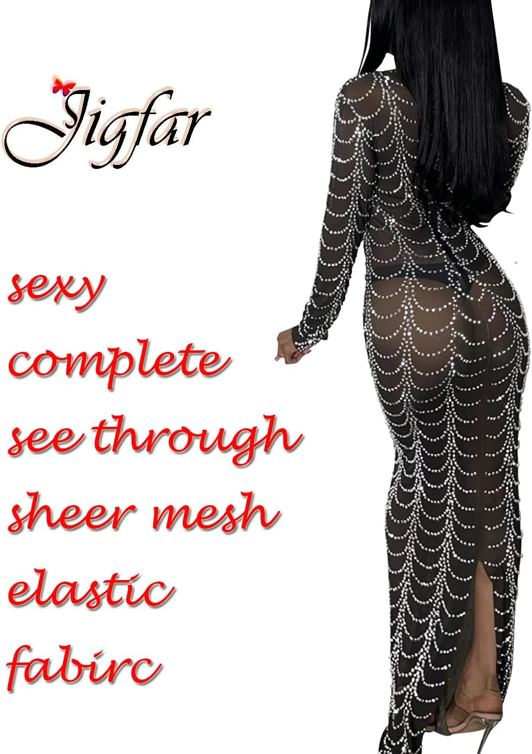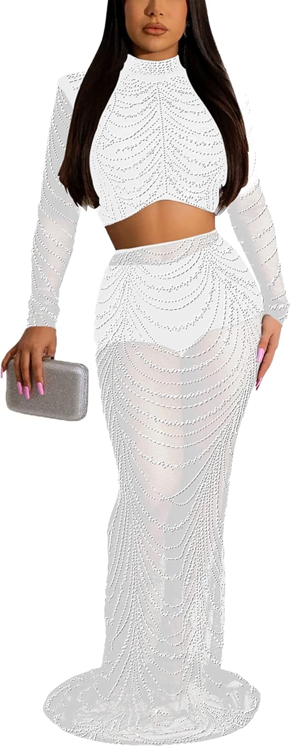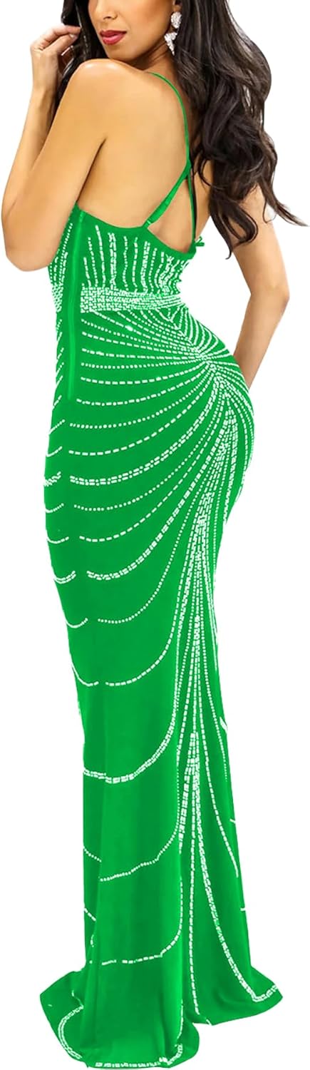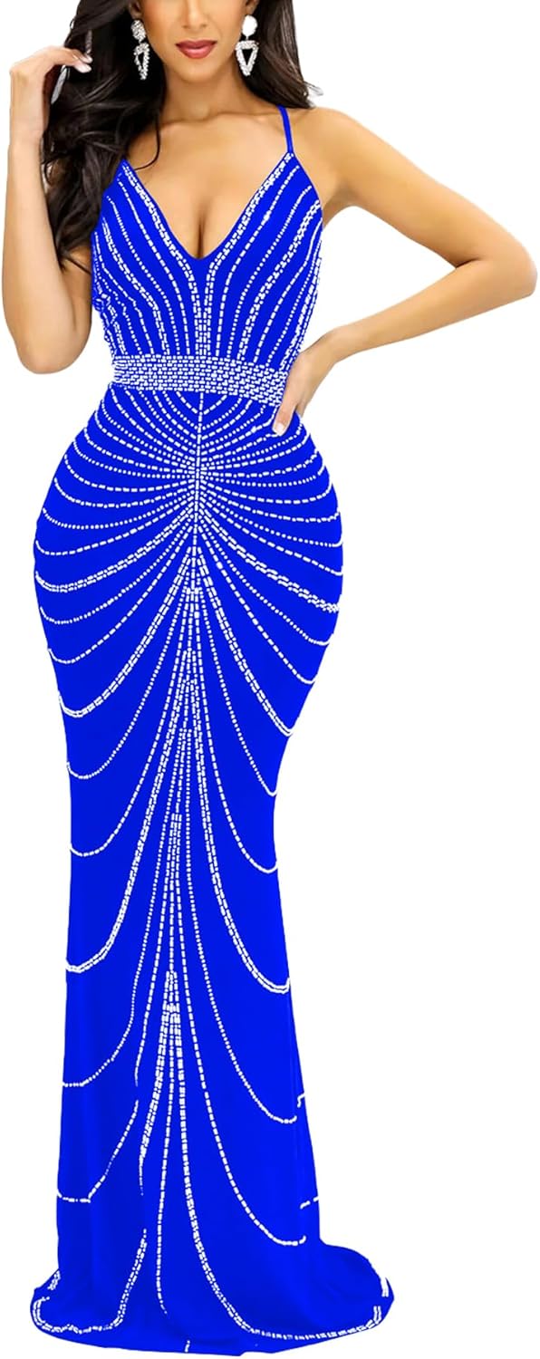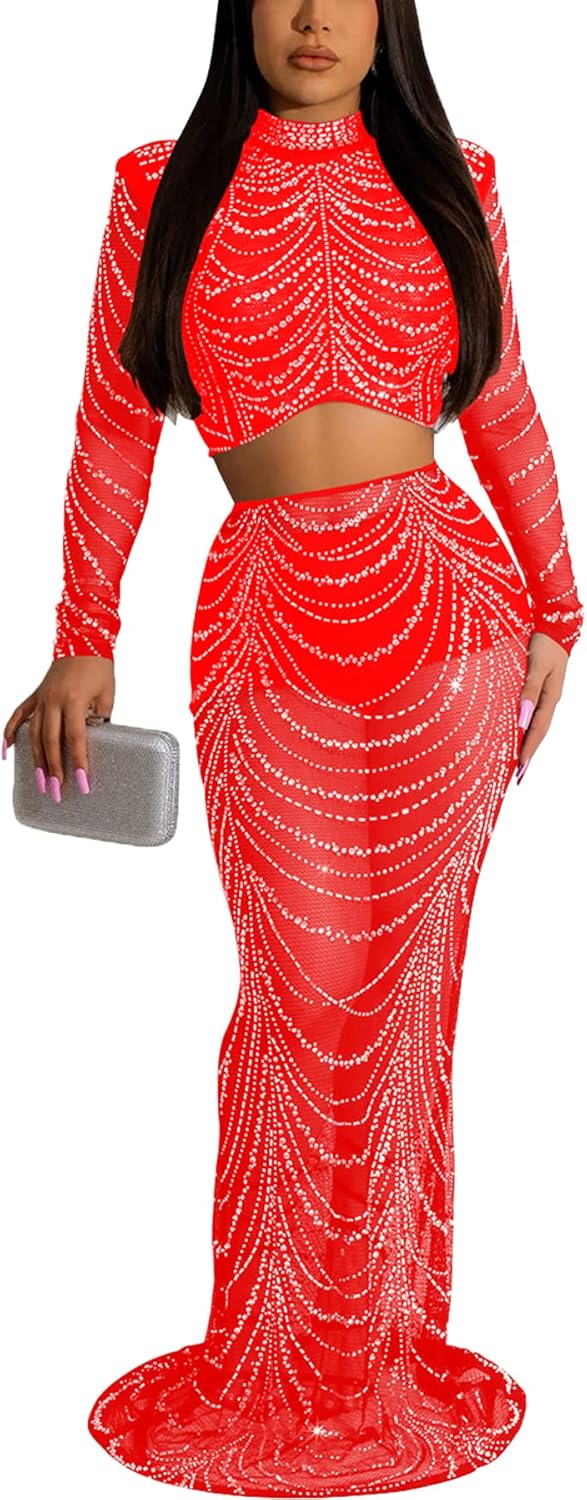 Women Sexy Elegant Rhinestone Mesh See Through Bodycon Party Club Night Out Dress
