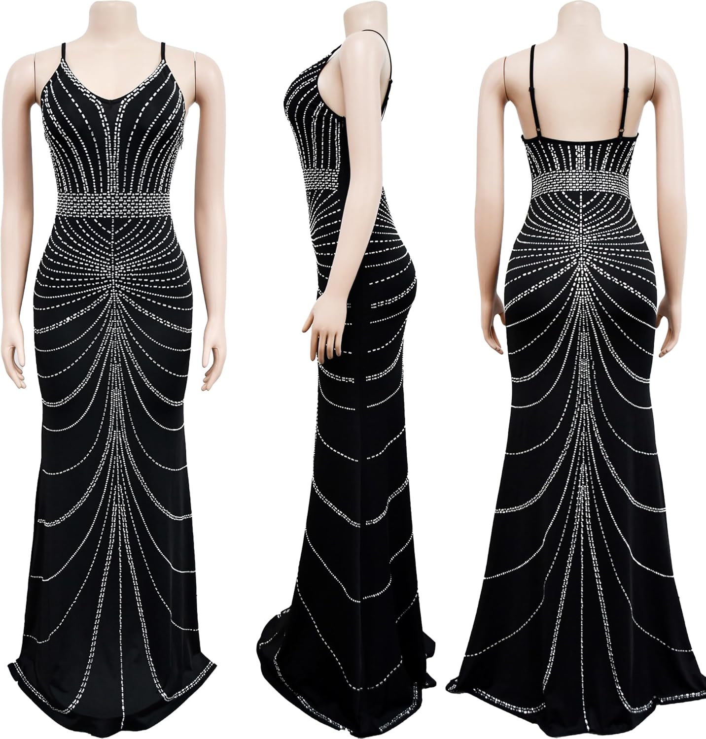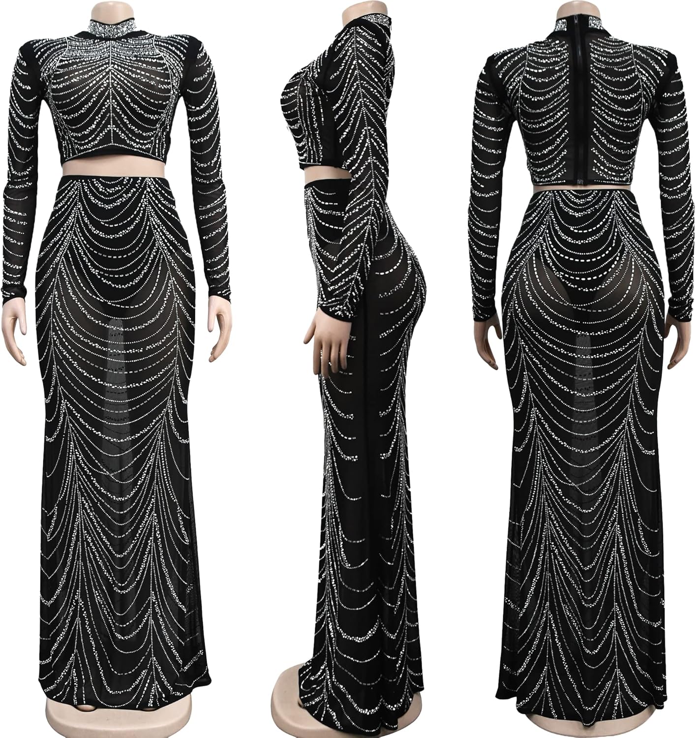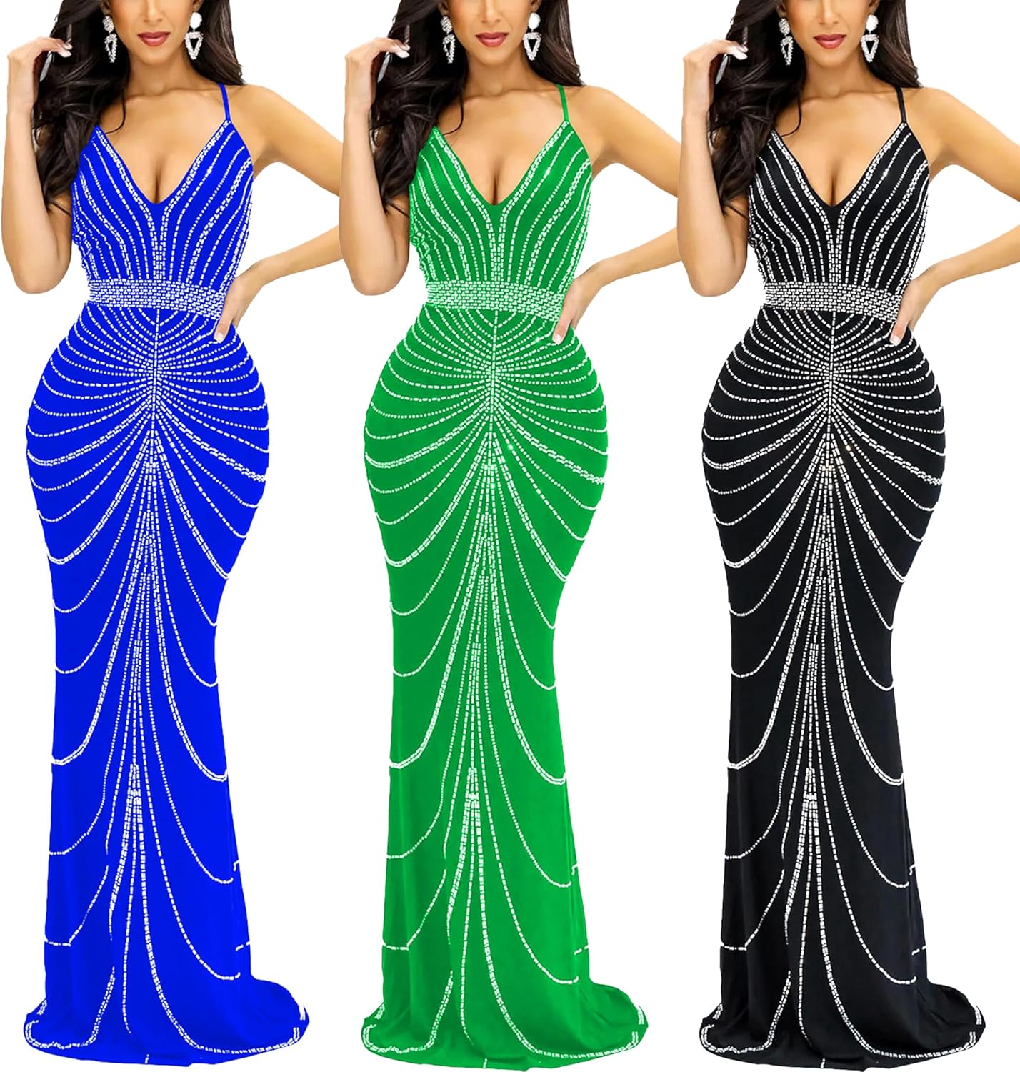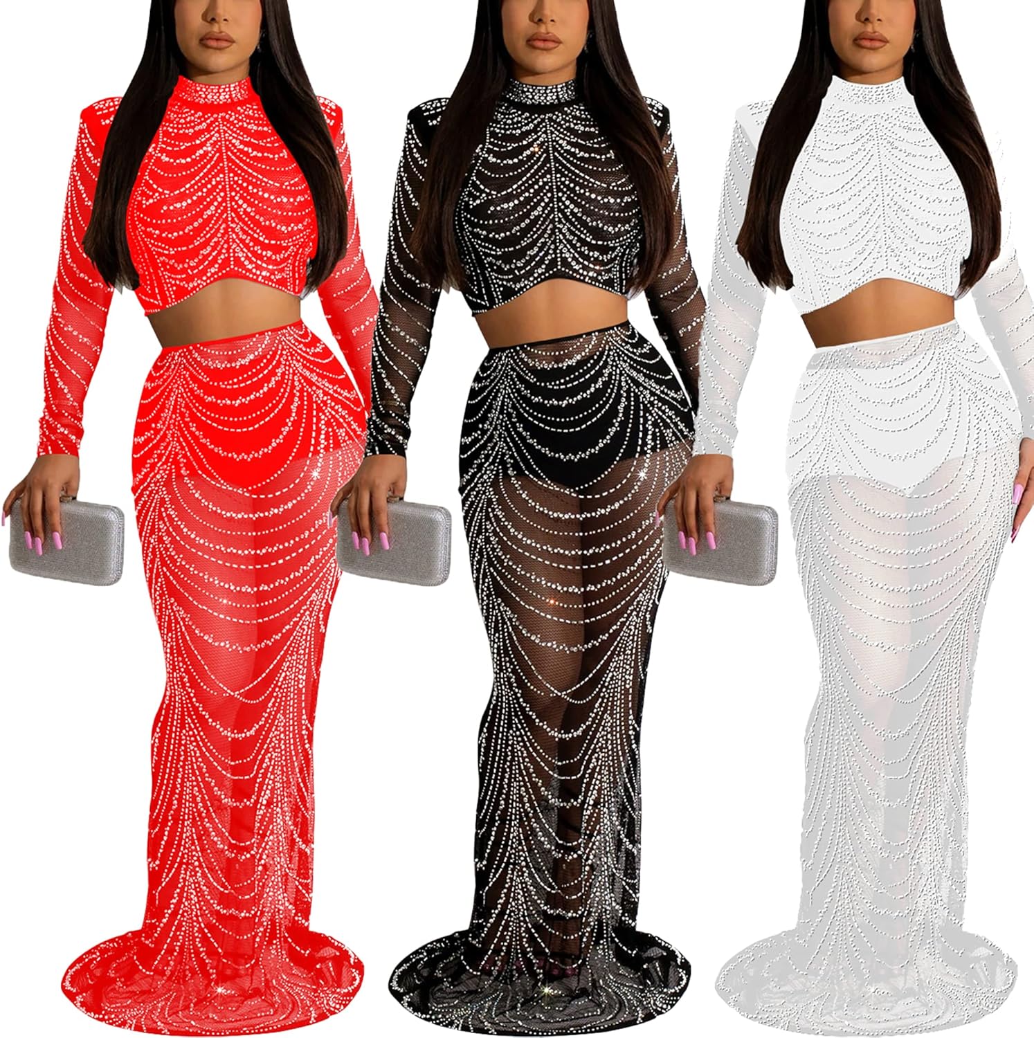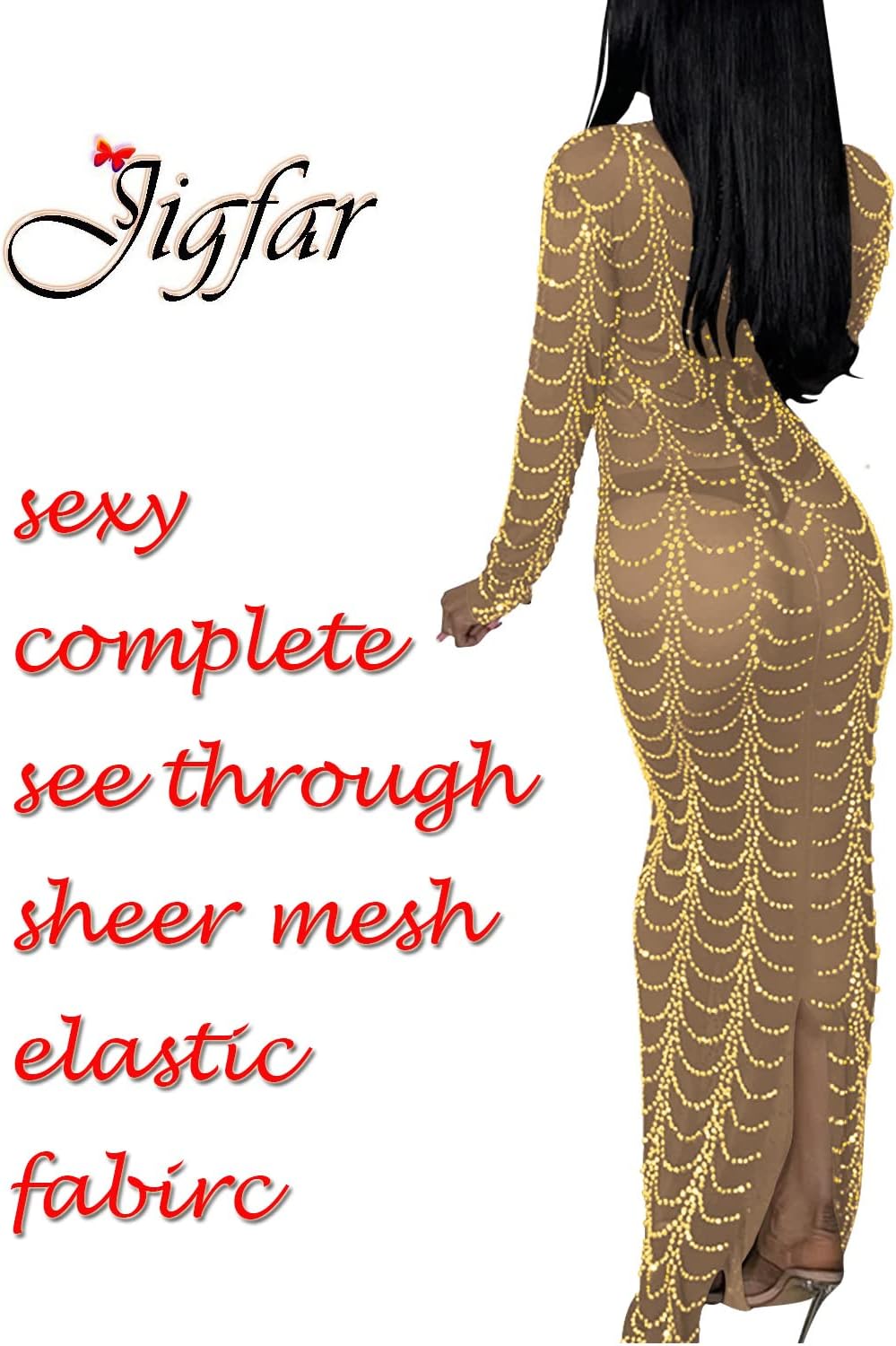 Women Sexy Elegant Rhinestone Mesh See Through Bodycon Party Club Night Out Dress